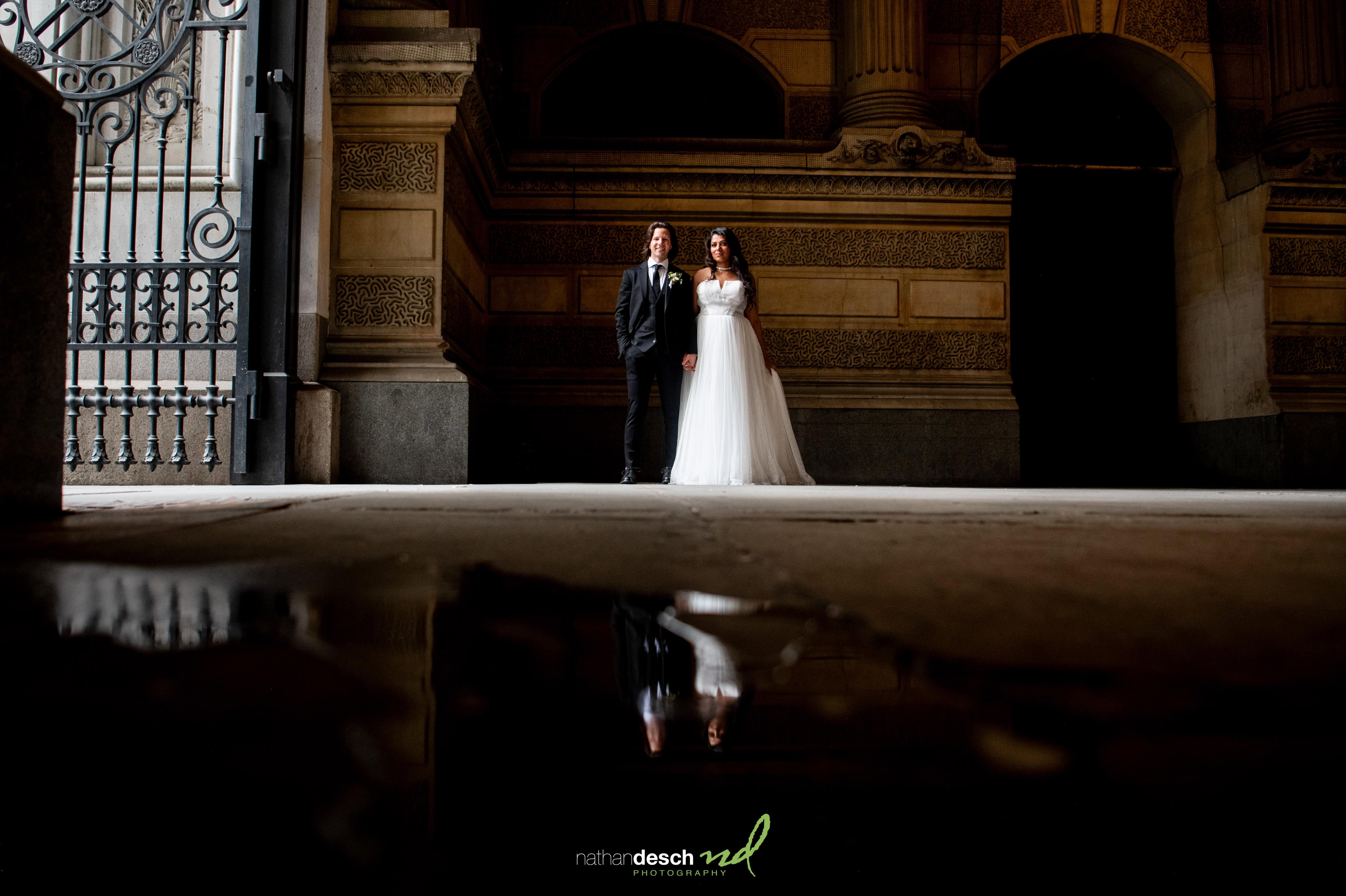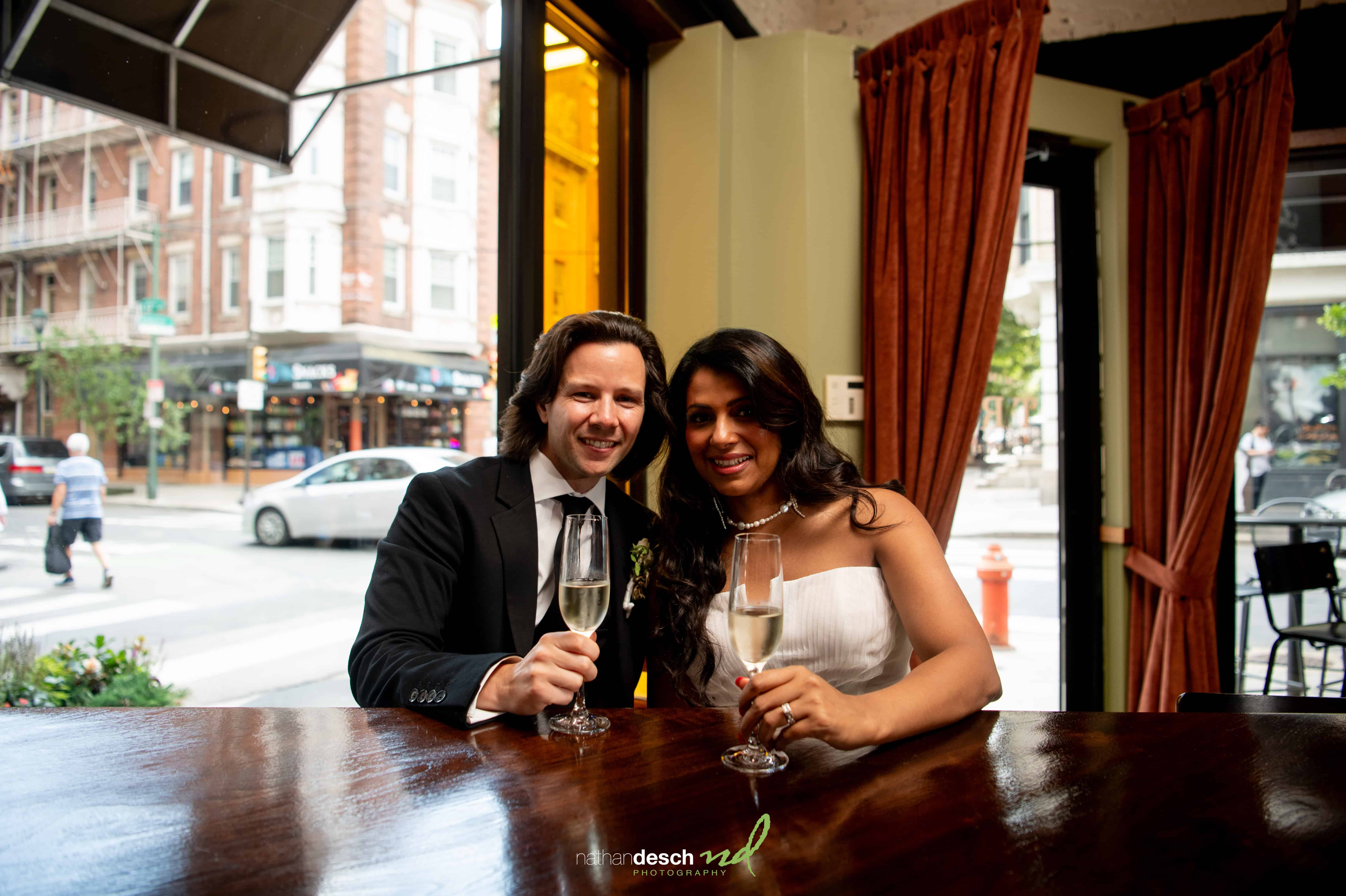 We began the day at their stunning apartment building, The Franklin Residences in Philadelphia, whose lounge provided a perfect backdrop full of character for their portraits. From there, Brian and Anusha embraced Philadelphia’s vibrant charm as we captured more portraits around iconic city locations like South Broad Street, the historic First Bank of the United States, and the chic setting of Talula’s Daily. Each spot uniquely reflected the couple’s stylish elegance and personality.