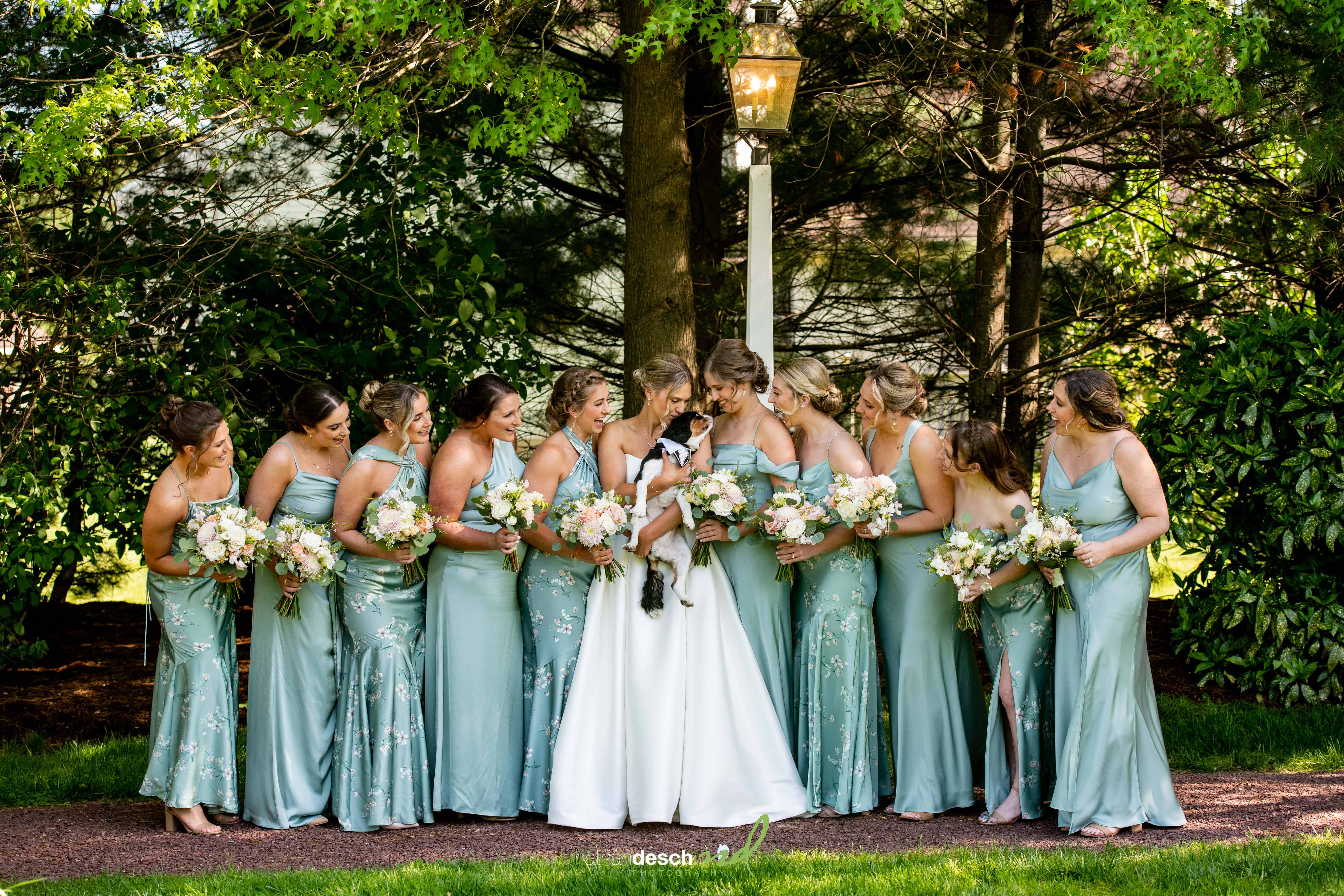 After the ceremony, we captured family portraits right at the church, followed by more romantic and fun portraits back on the stunning grounds of the Inn at Leola Village. One particularly joyful surprise was orchestrated by Leah’s mom, who arranged for their beloved dog to make an unexpected appearance, much to everyone’s delight!